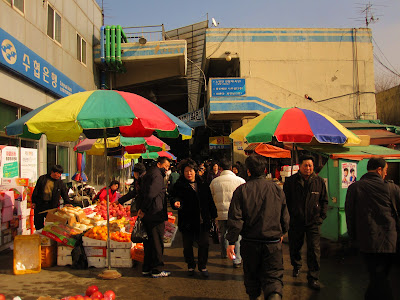 I finally made it over to Noryangjin Wholesale Fish Market. What a wild experience! It's the largest of its kind in Korea and has been around for over 76 years. I'm glad to have visited it, but it'll probably be awhile before I go back. While the smell isn't as strong as you may expect, there are fish guts everywhere. In fact, guys drive around and pick them up from the vendors, but many still remain on the floor. Even though I dressed casually, I should've worn my wellies instead of my faux-suede snow boots; now I've got a lasting reminder of the market's memorable aroma.